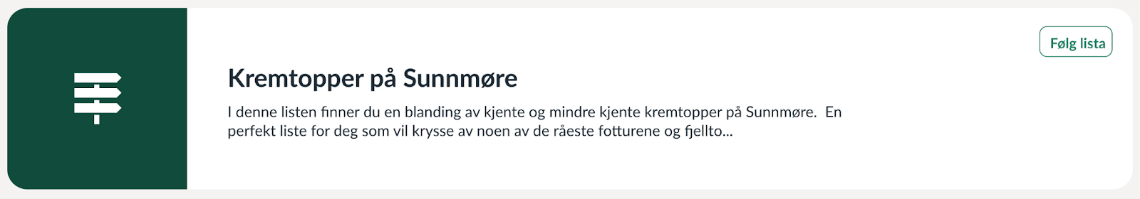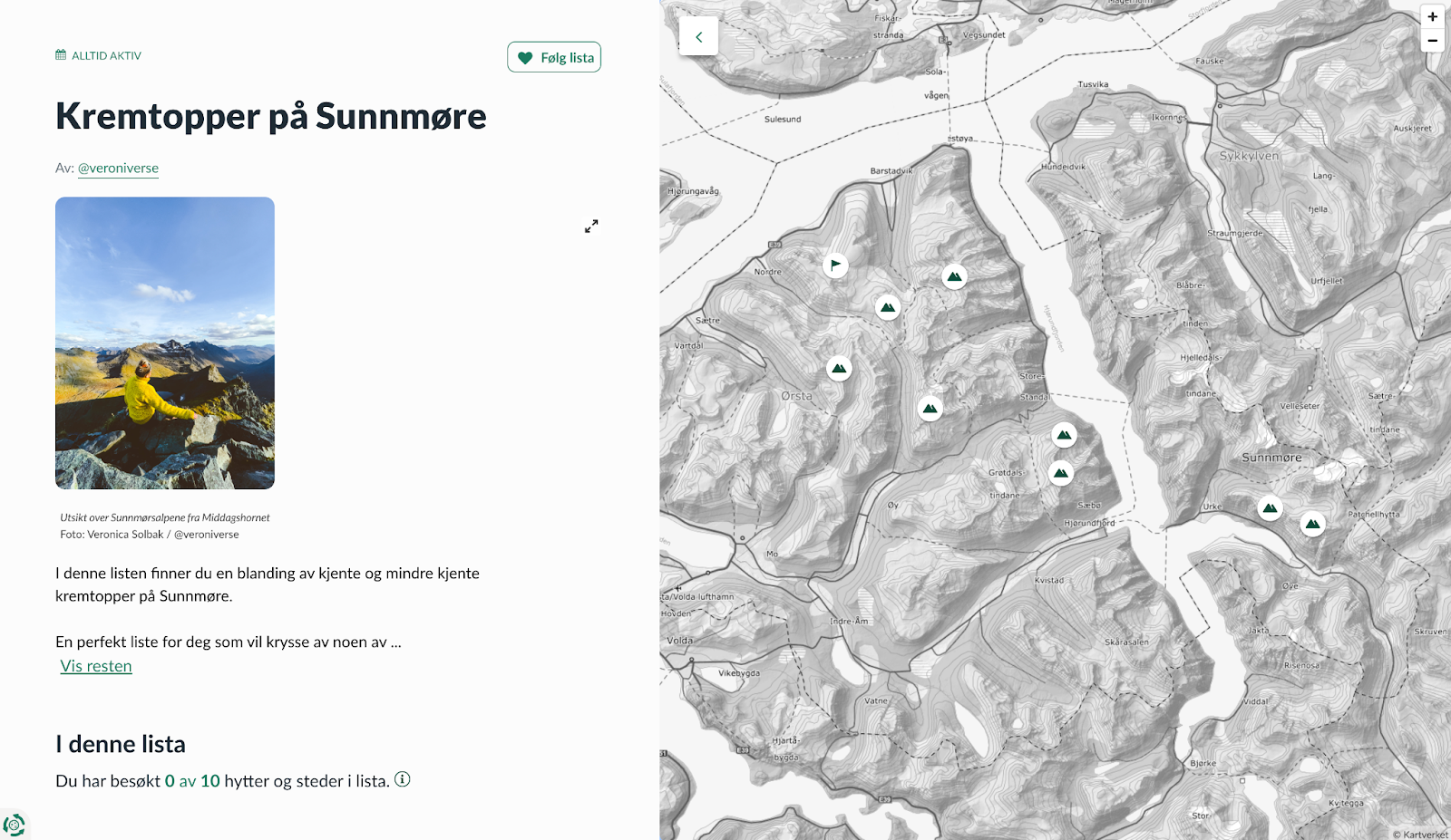 - Innholdet til listen: Er det en samling av fjelltopper, utsiktspunkter, gapahuker eller en god miks?