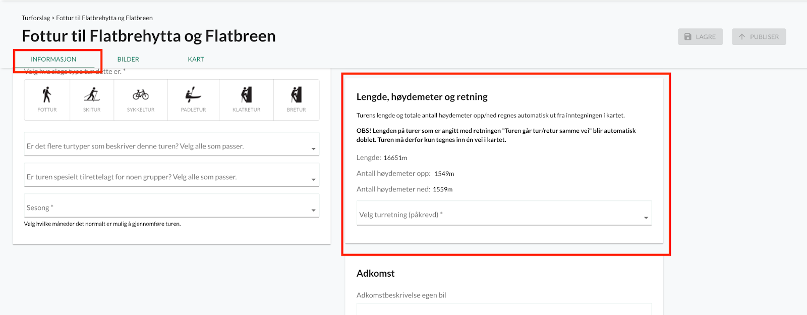 6) Verifiser resultatet under «Lengde, Høydemeter og retning» under fanen «Informasjon»